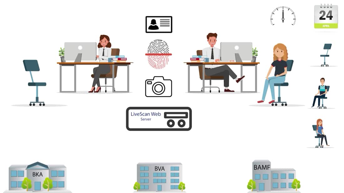 Unser Video erklärt, wie Sie LiveScan Web Sie bei der Erstregistrierung von Ausländern im Ausländerzentralregister (AZR-ER) unterstützt - einschließlich der vorangehenden Fast-ID. Weiter gehen wir darauf ein, dass Sie weiter Biometrieaufnahmen machen und Personendaten erfassen können, selbst wenn das Bundesverwaltungsamt (BVA) technisch nicht erreichbar ist.